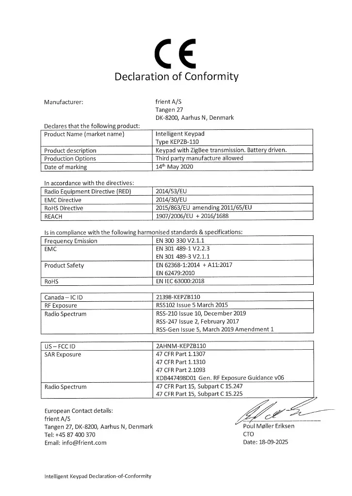 Das Intelligente Keypad ist in einer nach EN50131 Alarm-zertifizierten Version erhältlich und eignet sich daher perfekt für jede Sicherheitslösung.