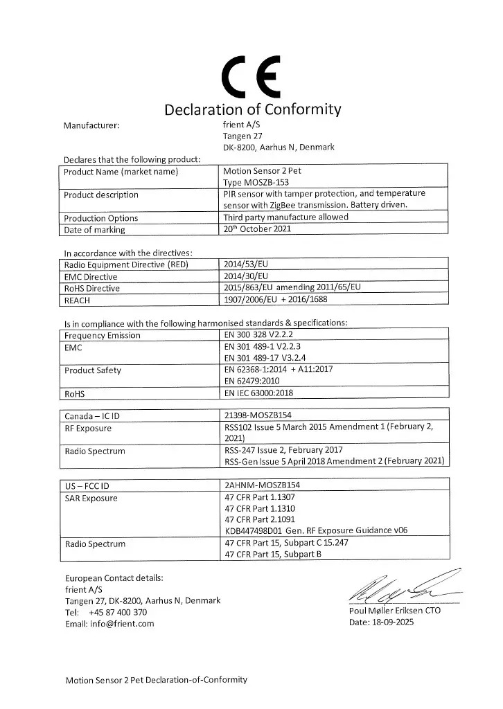 Der Sensor ist Zigbee 3.0-zertifiziert, was bedeutet, dass er in andere Zigbee-basierte Geräte integriert werden kann.